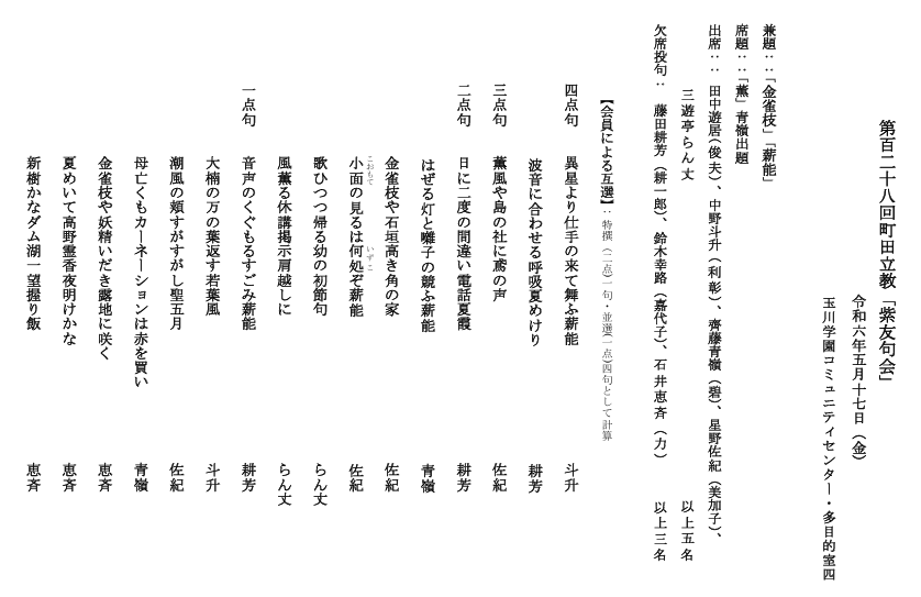 5月17日に行われました第128回句会のまとめをお送りいたします。