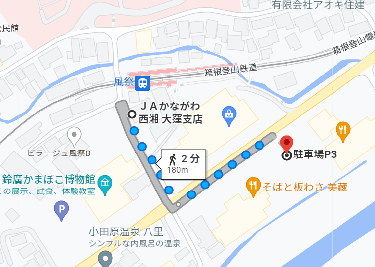 相模大野9:45(特急)小田原10:22 箱根登山鉄道10:28発⇒風祭10:35