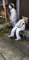 歩きの途中で庭先や田畑で作業している方に挨拶することがありますが、そんな折に聞かされた話の一つがイノシシによる被害。東京近郊でもそうですが、多くの田畑では電気柵で囲って防ぐ努力をしています。不謹慎かもしれませんが、ビニールの虎には思わず笑ってしまいました。でも、農家の方の気持ちを考えれば、これでイノシシ除けの効果があることを願って通り過ぎました。