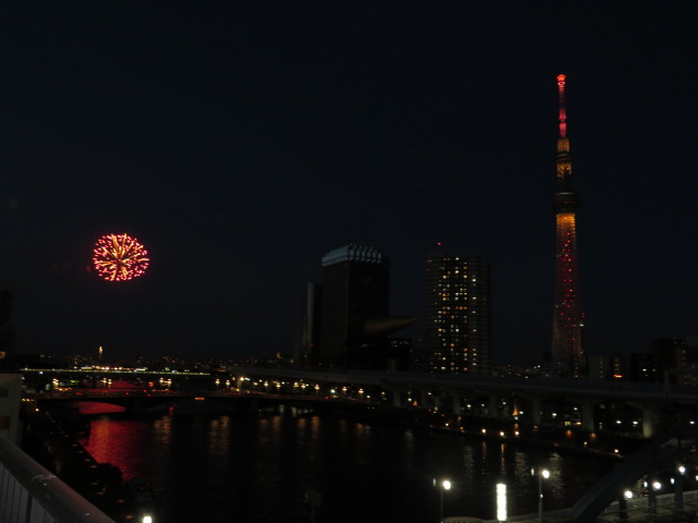 隅田川を目の前に花火を満喫しました。嘉代子さんご紹介ありがとうございます!